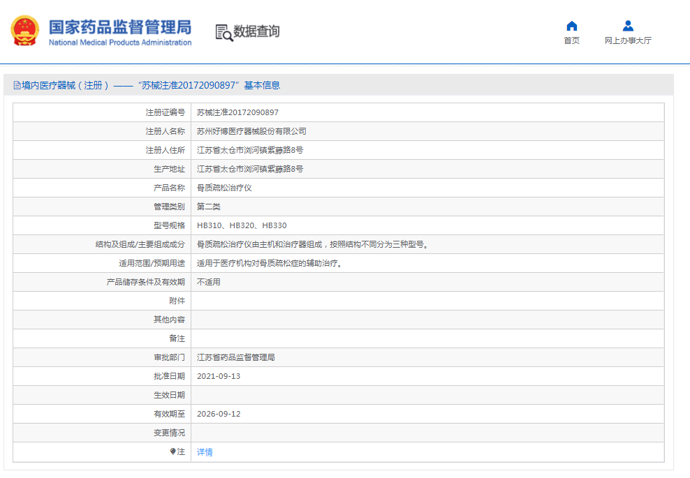 适用范围/预期用途:适用于医疗机构对骨质疏松症的辅助治疗。
