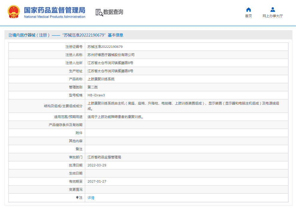 适用范围/预期用途:适用于上肢功能障碍患者的康复训练。